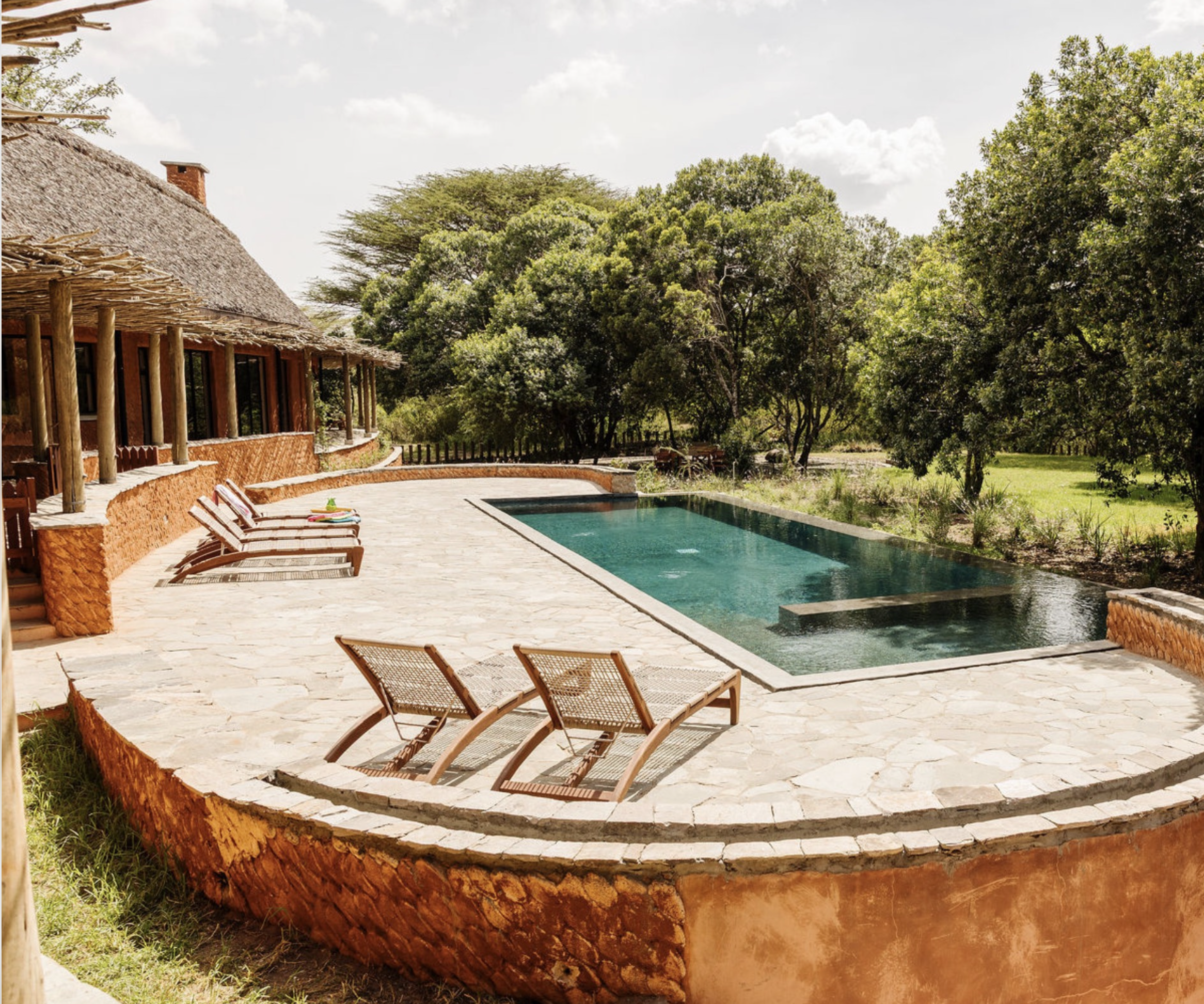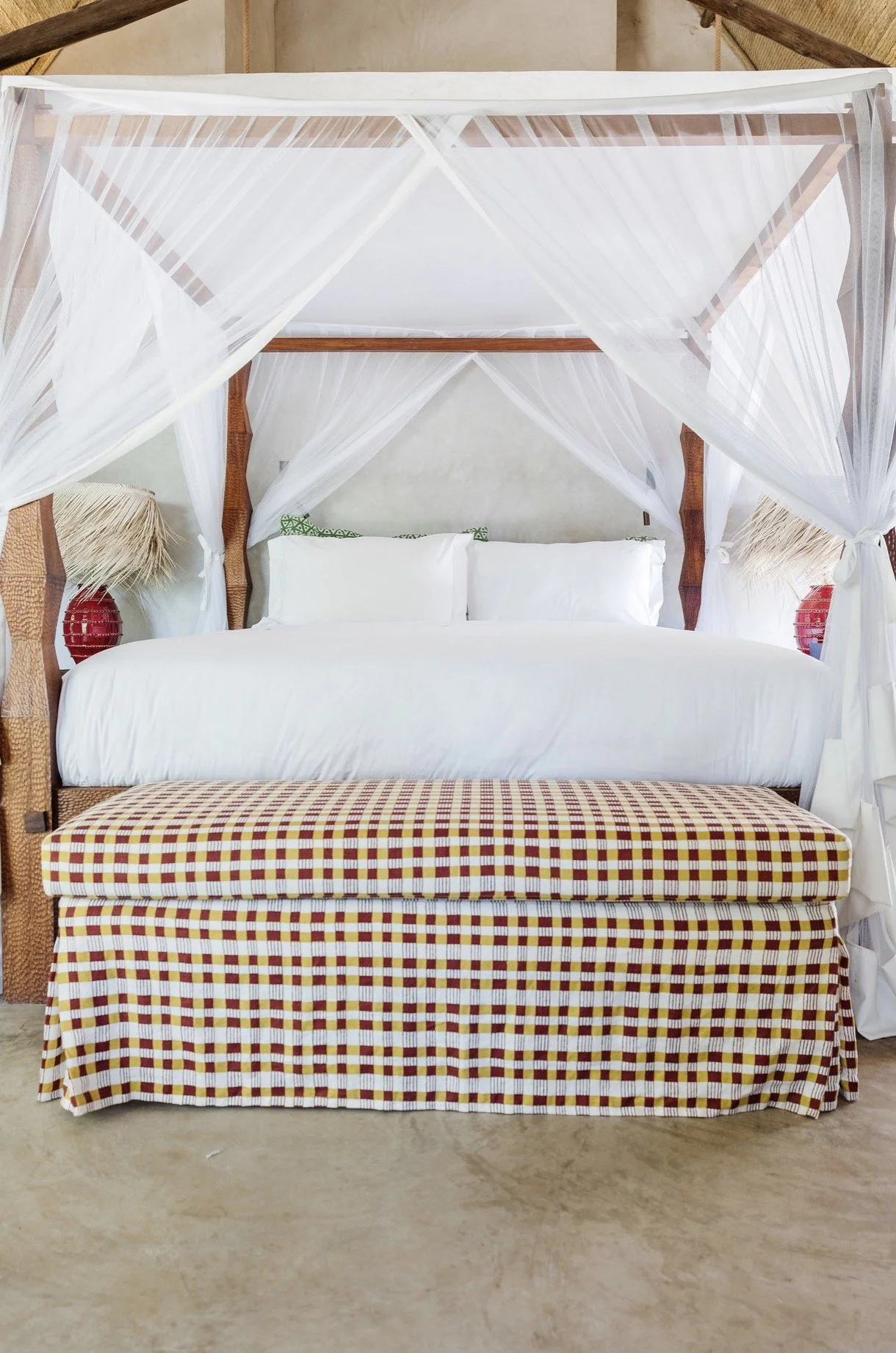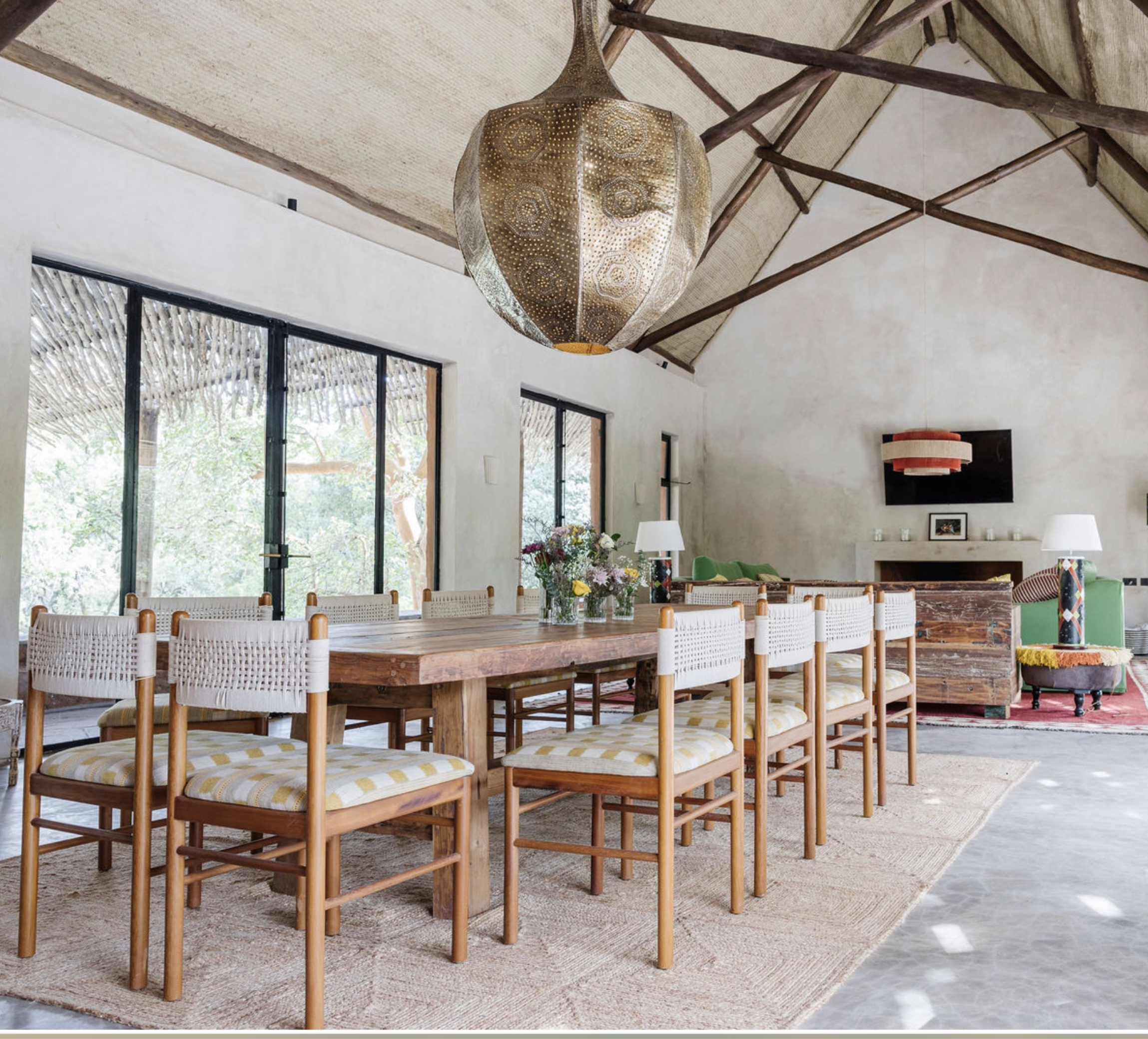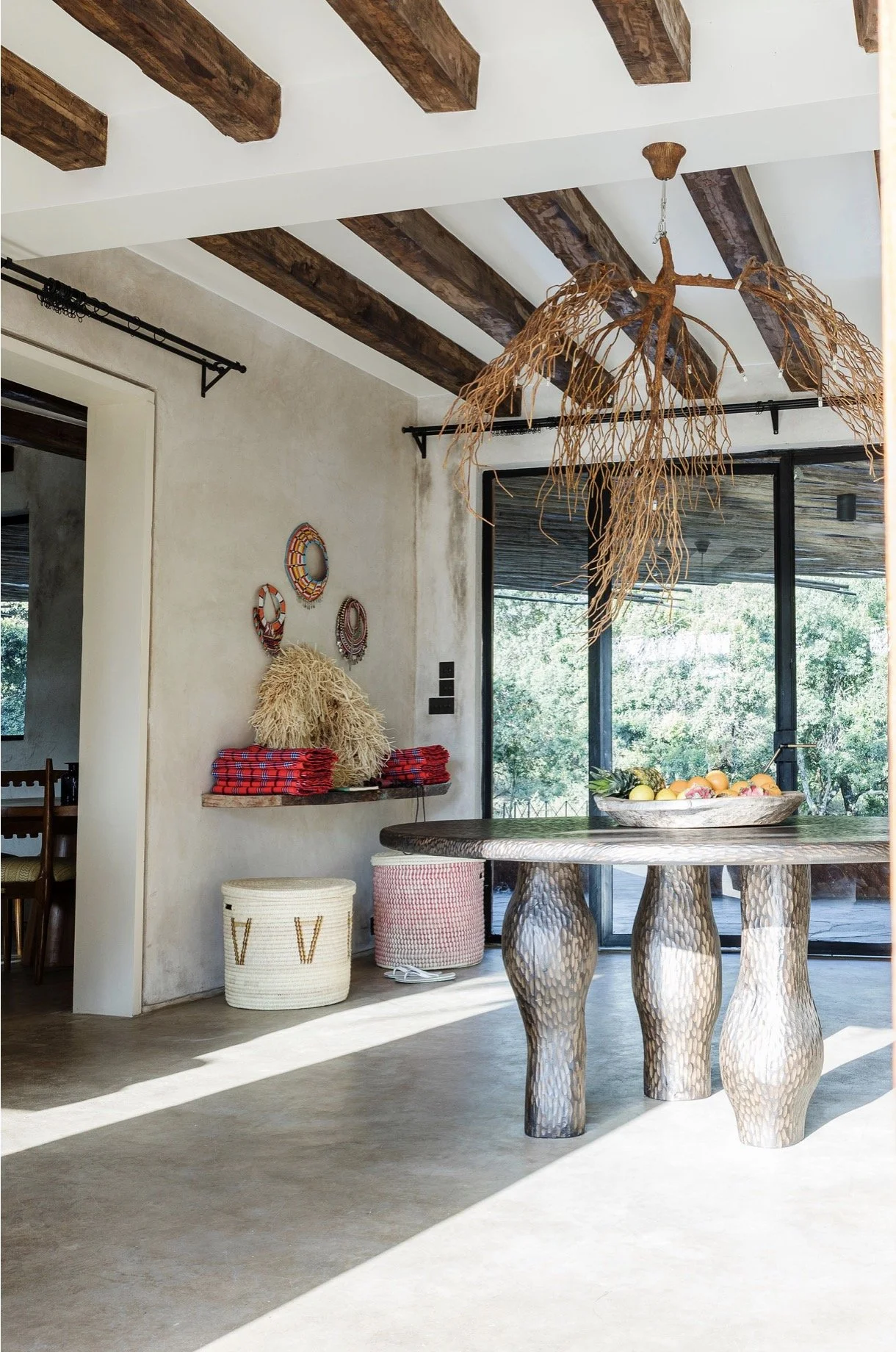 Set on a curve of the Mara river in a private reserve, this family home is surrounded by the incredible wildlife of Kenya. The house is made from local natural materials and techniques which we have carried through into the interiors and combined with vibrant colours and patterns. All the spaces feature soaring views up to the thatched roof and custom furnishing including a bar with hand beaded elements beautifully made by Masai craftspeople.