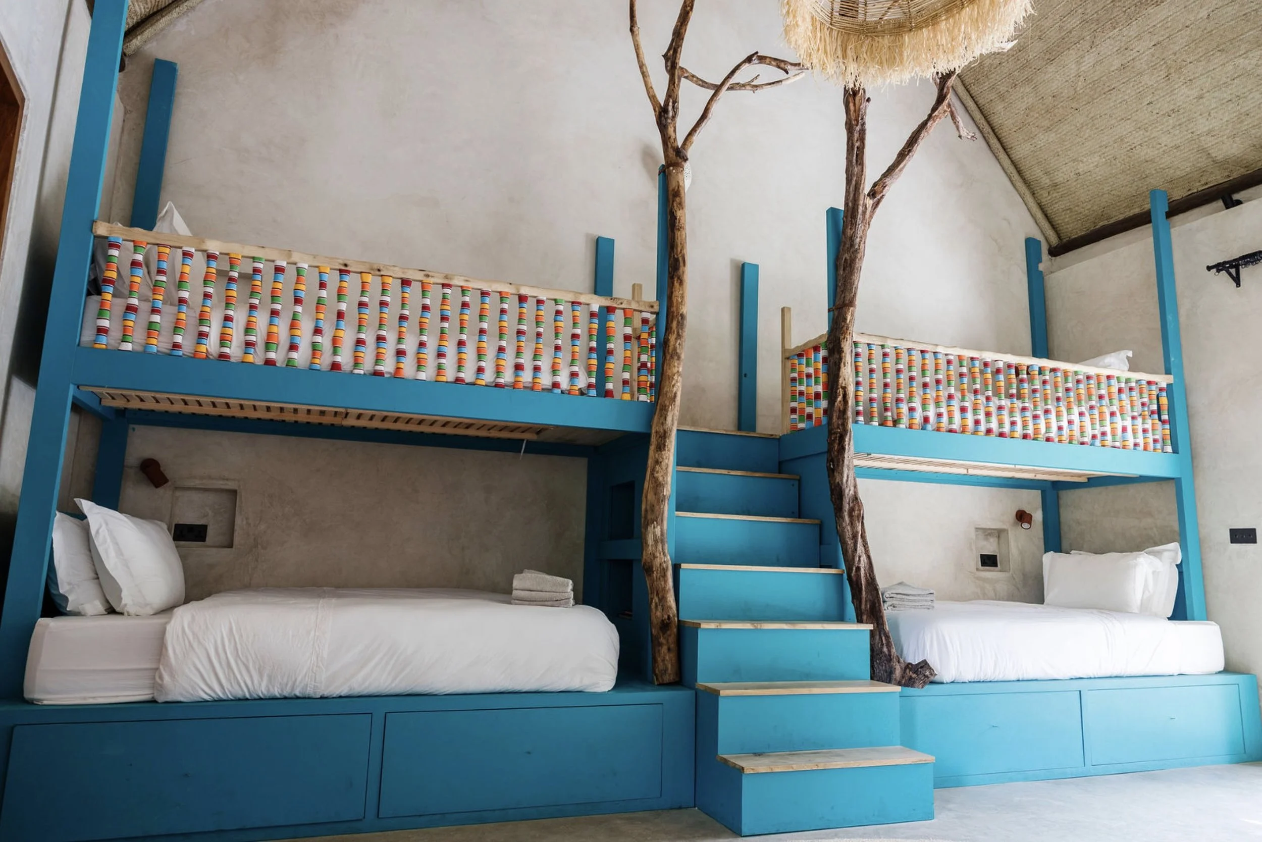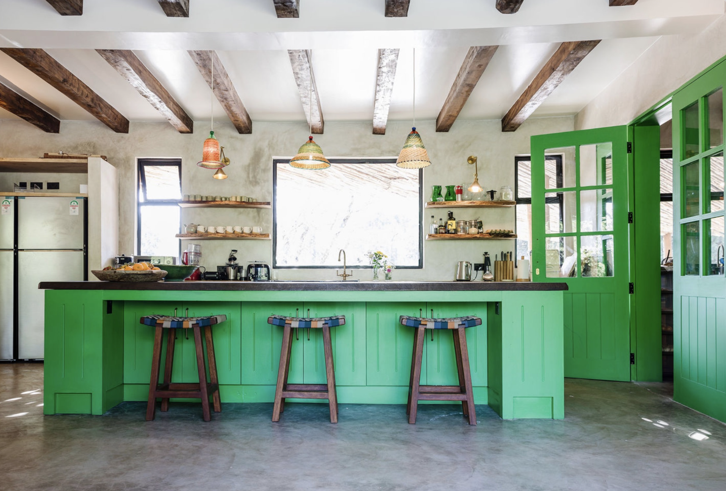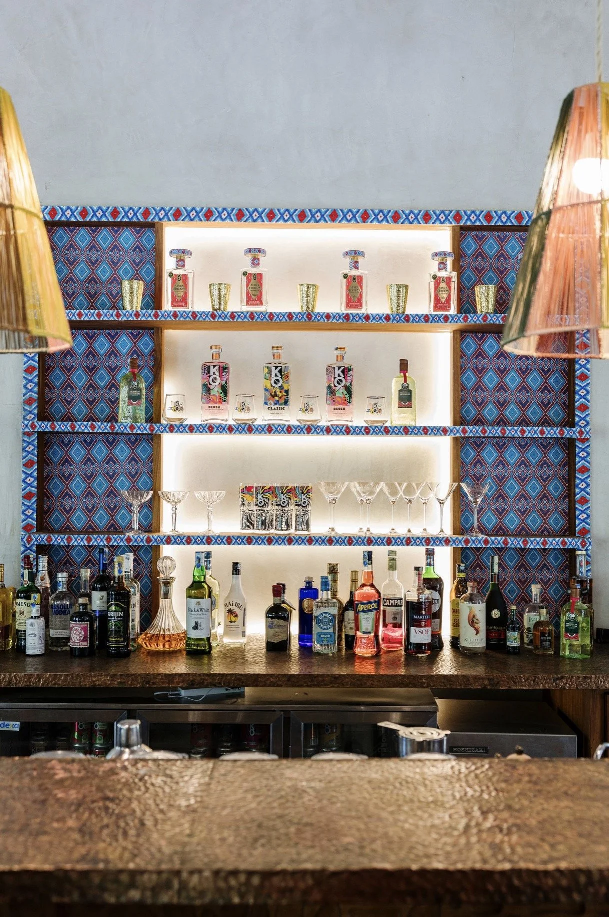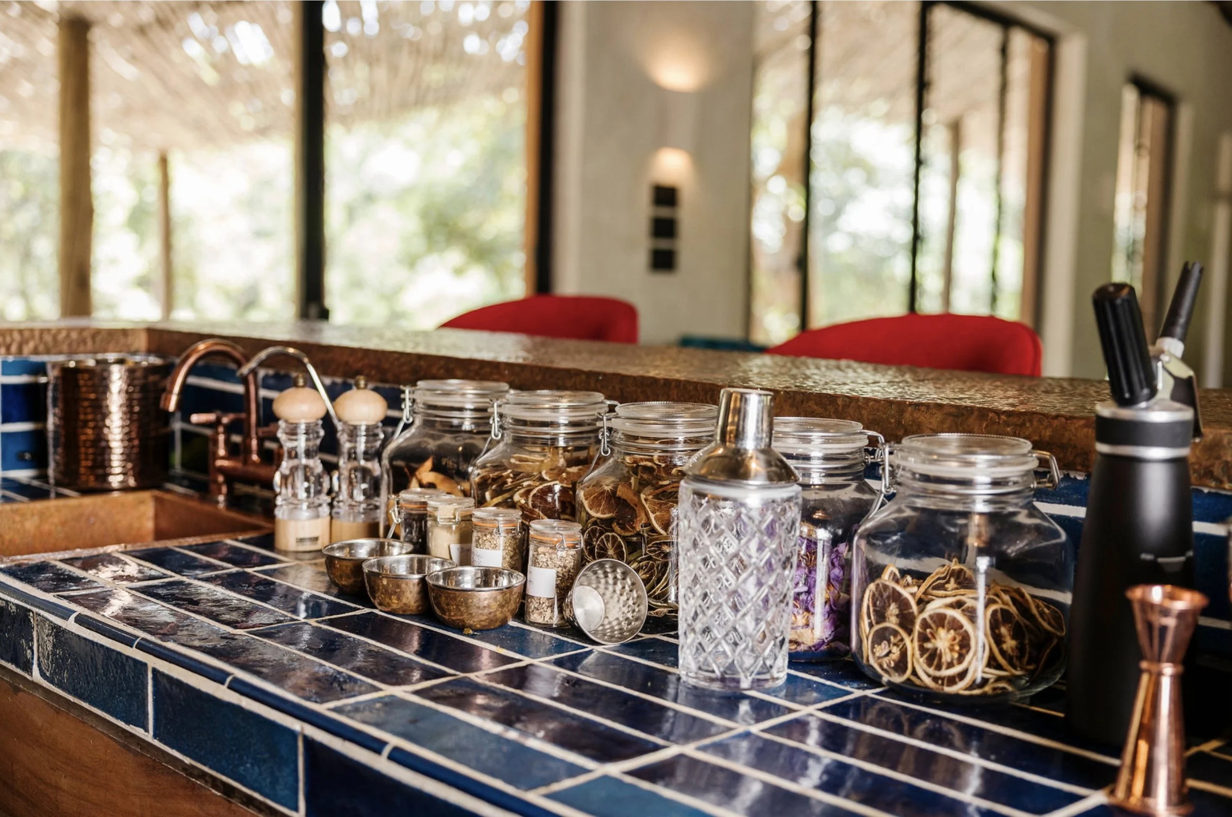 Set on a curve of the Mara river in a private reserve, this family home is surrounded by the incredible wildlife of Kenya. The house is made from local natural materials and techniques which we have carried through into the interiors and combined with vibrant colours and patterns. All the spaces feature soaring views up to the thatched roof and custom furnishing including a bar with hand beaded elements beautifully made by Masai craftspeople.